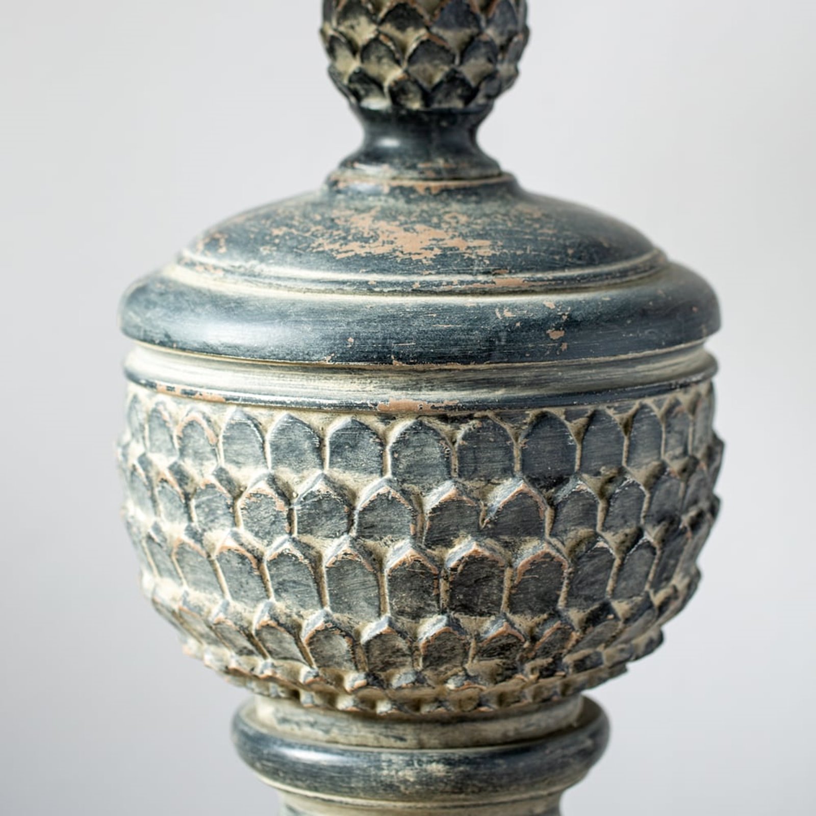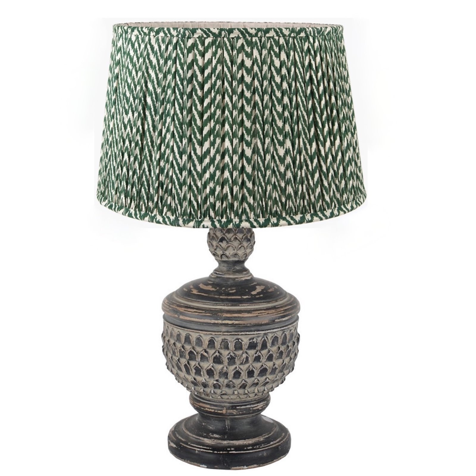 Aged Black Carved Table lamp with Shade