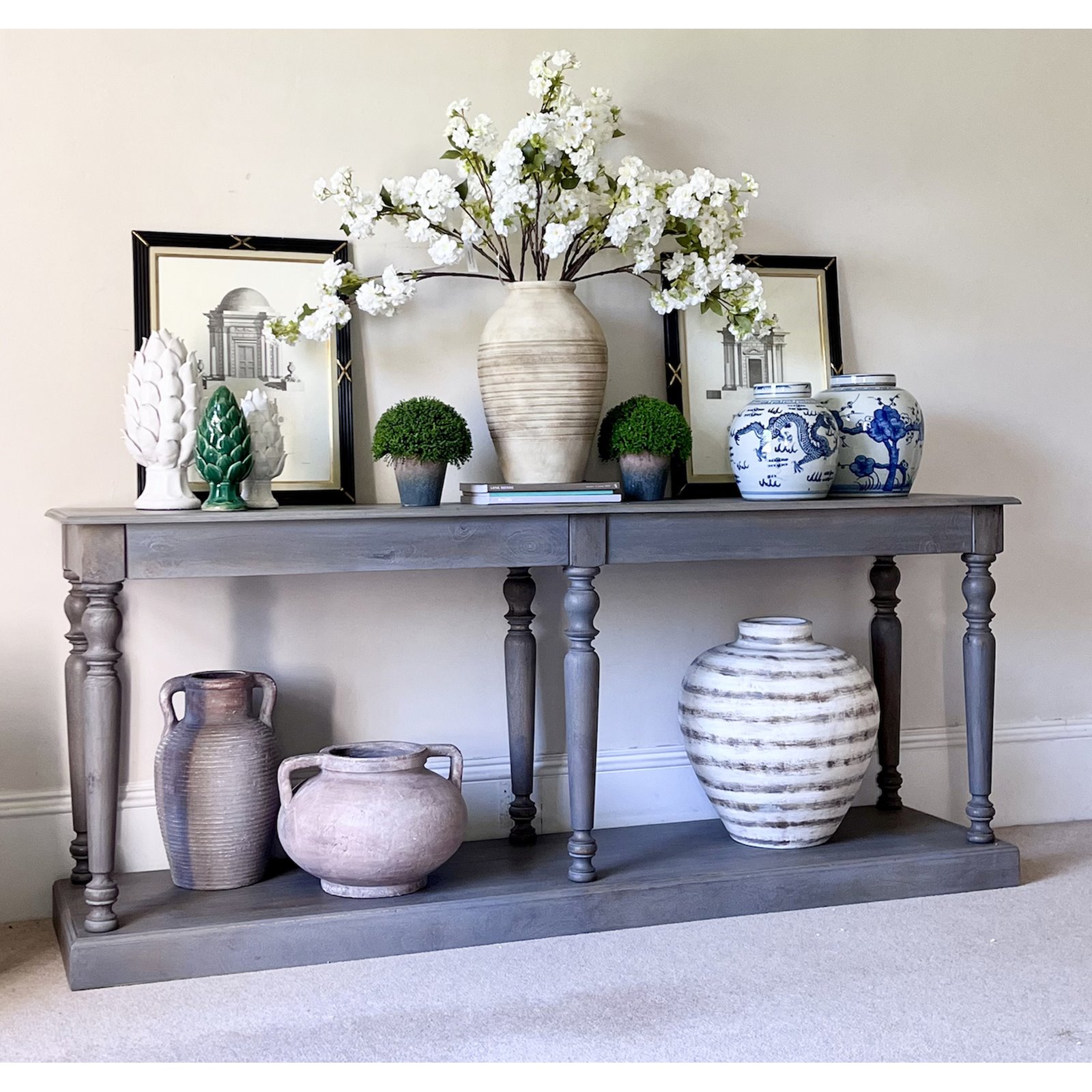 This masterfully crafted urn blends ancient Mediterranean grandeur with versatile styling potential. Its weathered terracotta finish and twin handles create an authentic antiqued statement piece. Perfect for both classic and contemporary spaces.