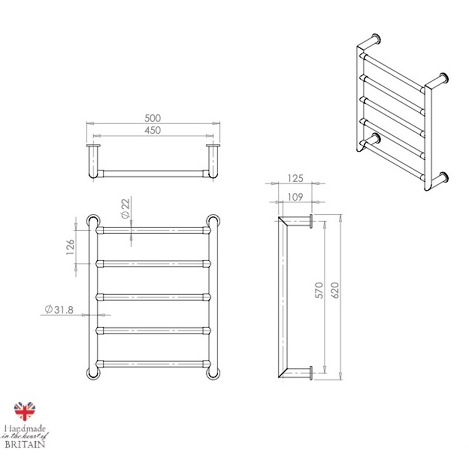 We construct from brass materials and standard 32mm tube. As all our towel warmers are hand made here in the UK we can produce any size and any style of towel rail.