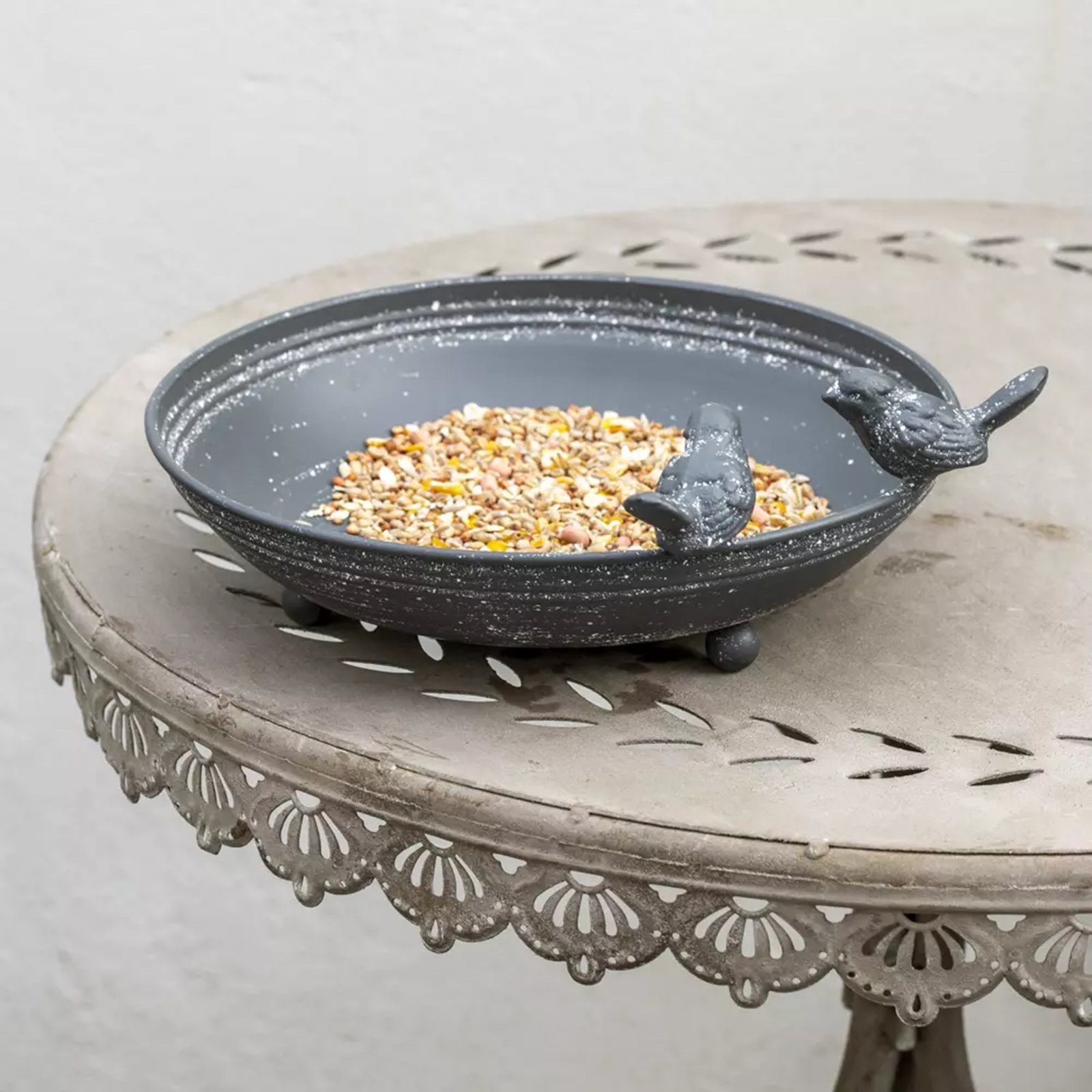 This charming antique grey bird bath brings a touch of charm to your garden. Featuring two beautifully crafted decorative birds, it offers both functionality and style. Made with a classic design, this bird bath creates a welcoming spot for birds to refresh themselves while adding a graceful accent to your outdoor space. Its subtle colour and intricate details make it a delightful addition to any outside space.