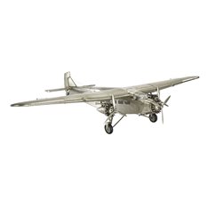 Our hand cast model Ford Trimotor is finished in polished aluminium with functioning ailerons, tail rudder and a fully detailed cockpit. This model is hand finished and made from recycled aeroplane aluminium and comes complete with an aluminium stand for maximum display impact.