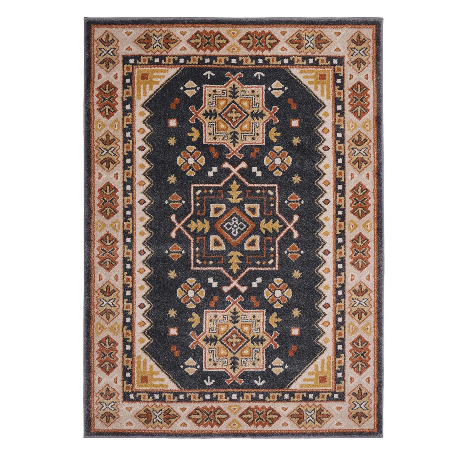 This gorgeous bright rug features a traditional aztec inspired pattern, combining classic design with durable materials that make it easy to maintain. This rug is crafted with a polypropylene pile and features a jute, polyester and latex backing. A lovely rug which would add colour and depth to your room.