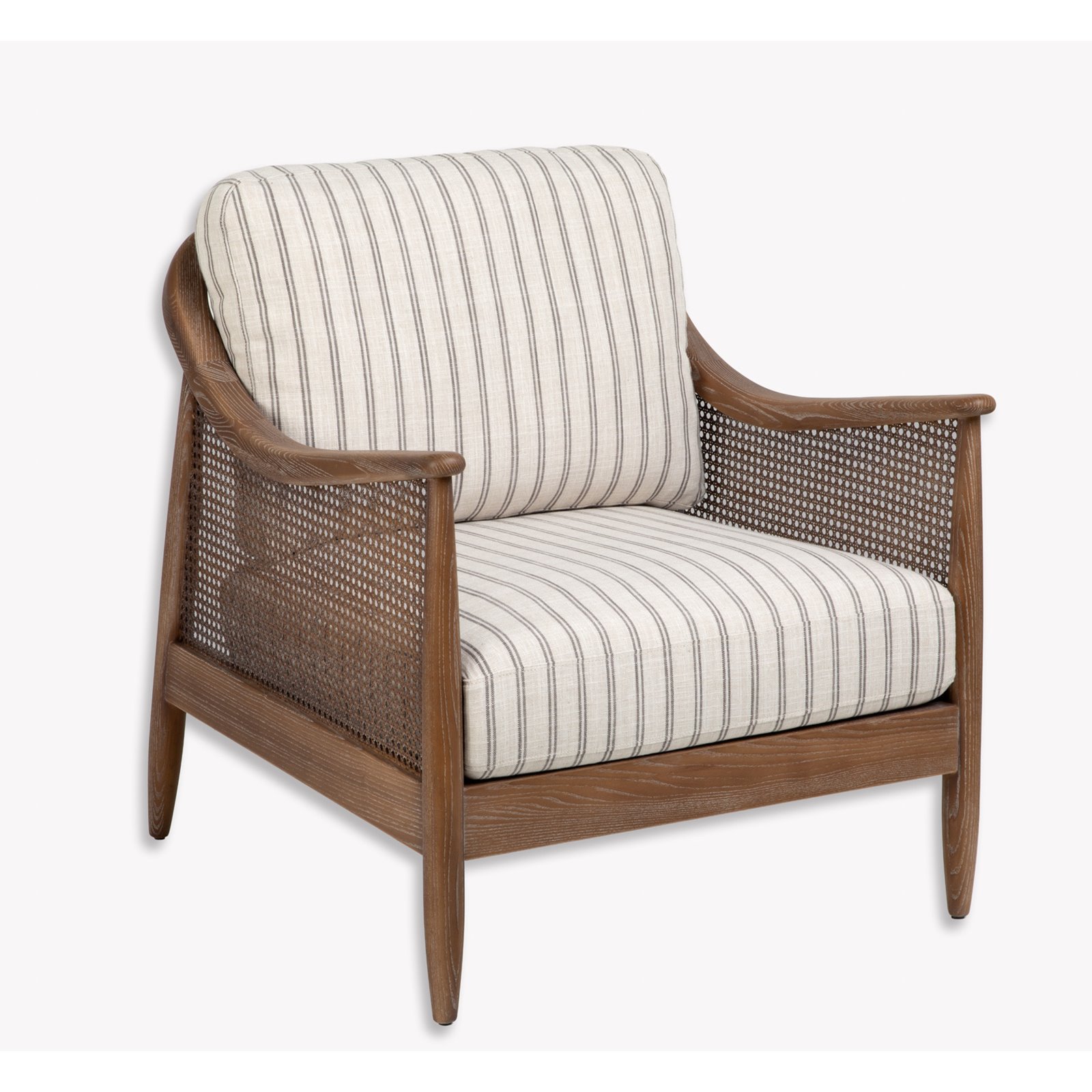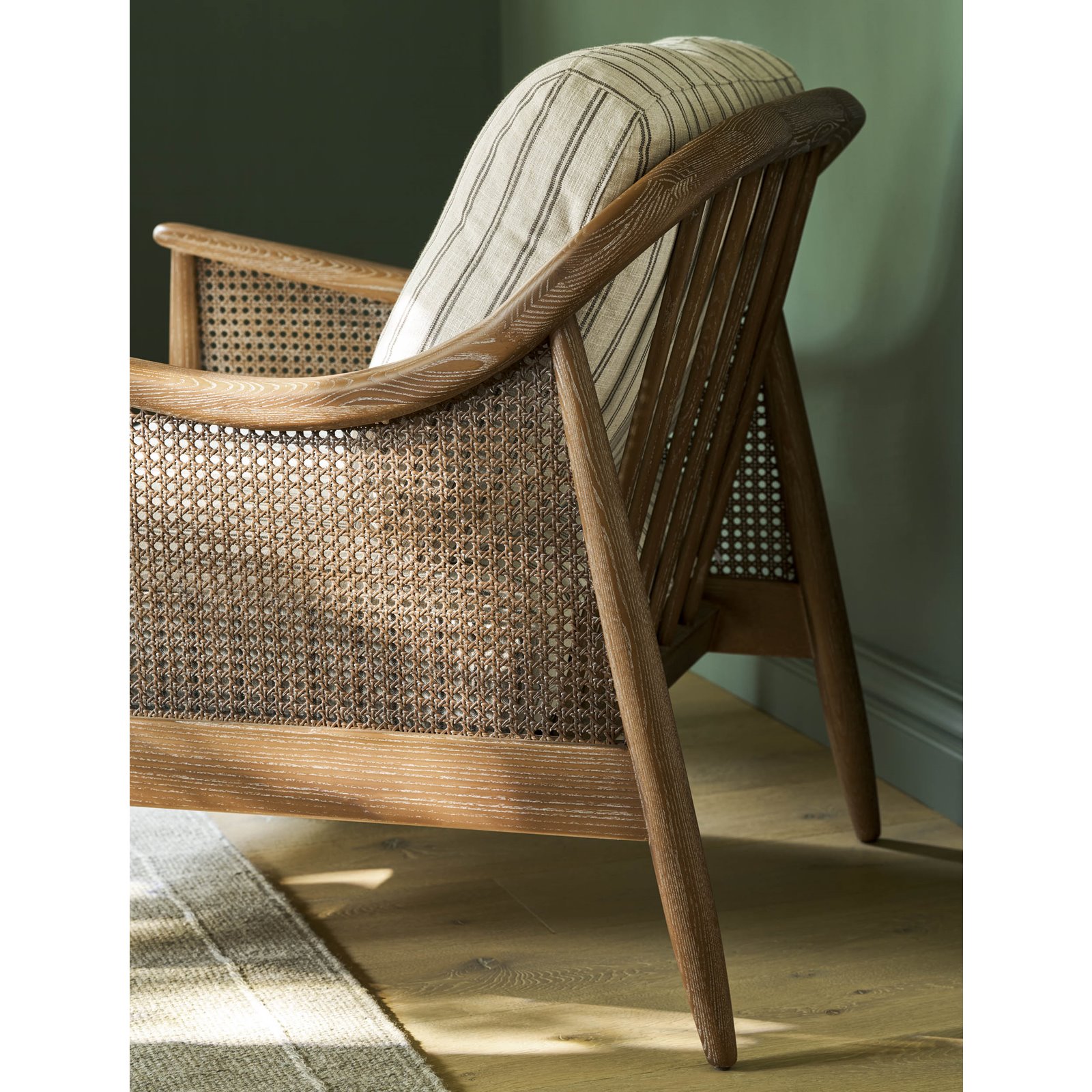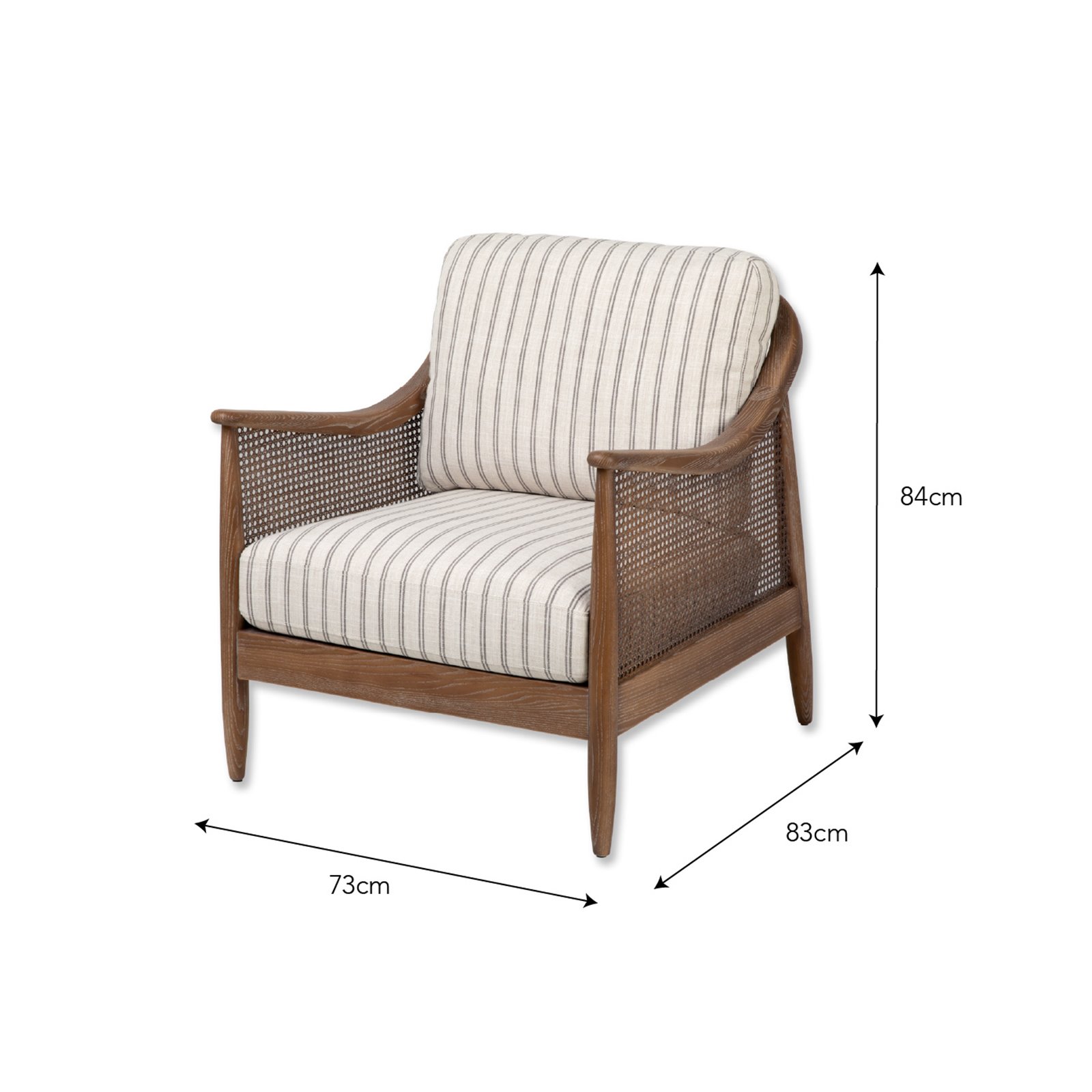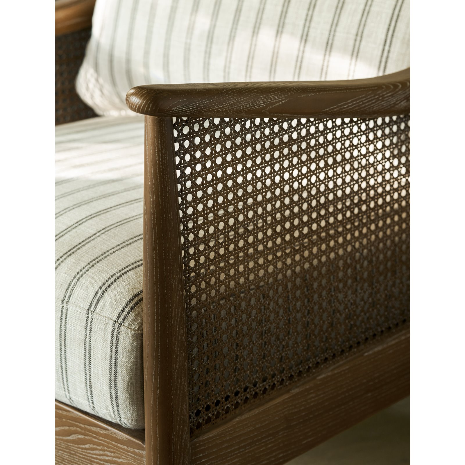 When you need to switch off just sink into our stylish natural Rattan Armchair it is perfect for relaxing. This comfy chair has a striking carbon ticking design upholstered on the luxuriously thick Oatmeal back cushion and seat pad that makes it supremely comfortable. This design's chic rattan frame is handwoven and compliments the washed solid Ash frame perfectly. It makes it a great choice for a conservatory or garden room, as well as for a living room or bedroom occasional chair.