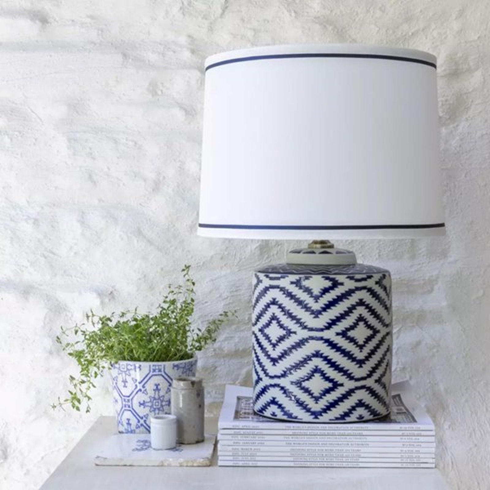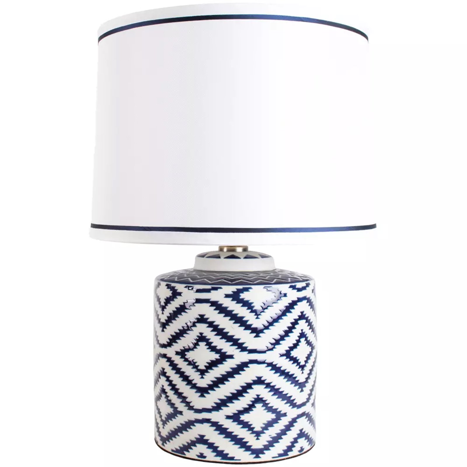 This lovely french inspired table lamp features a heavy ceramic base with a blue and white Ikat design wrapping around the lamp base the beautiful shade of blue captures the eye, with a unique design that adds a cultural touch to the piece.