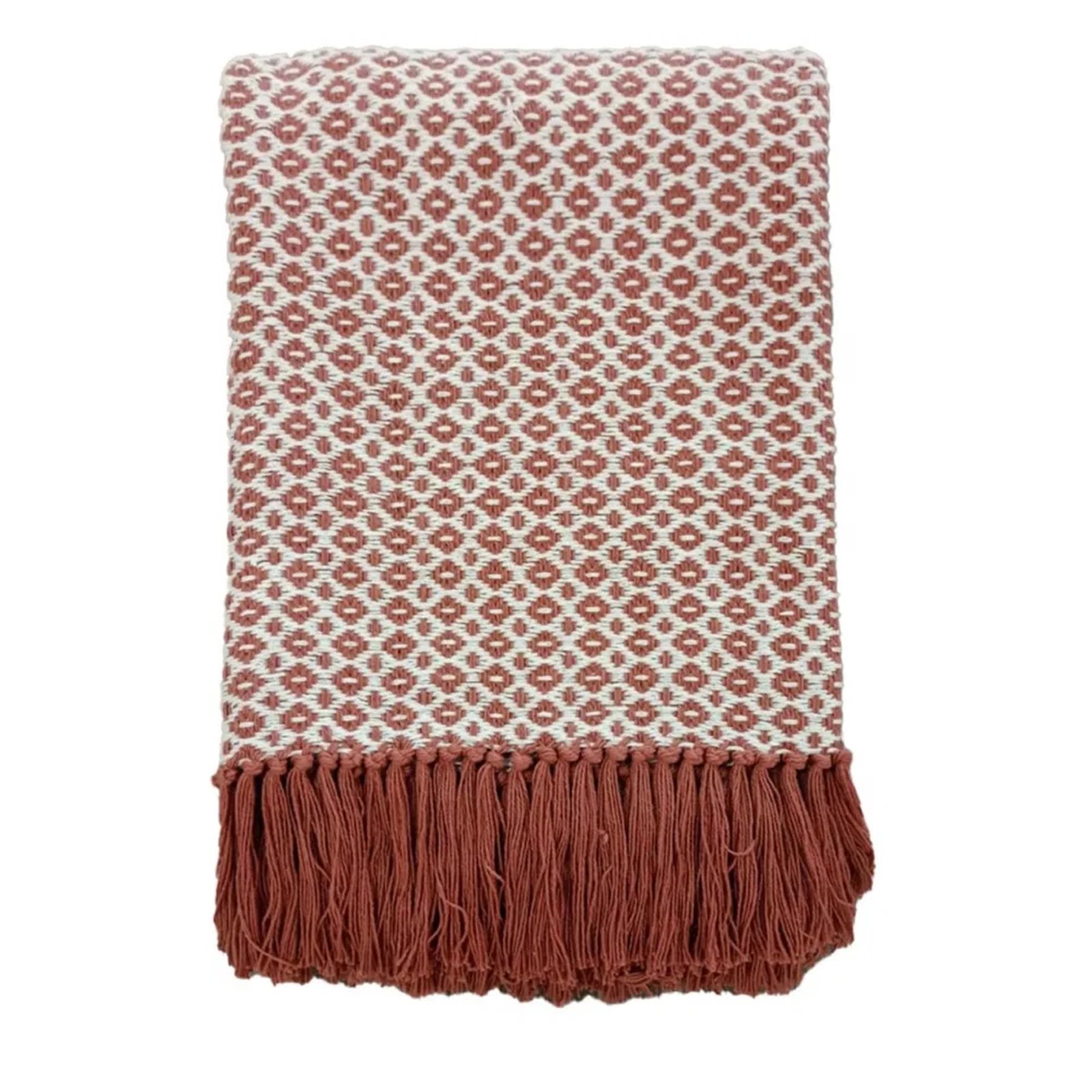 Diamond Weave Fringed Throw - Berry
