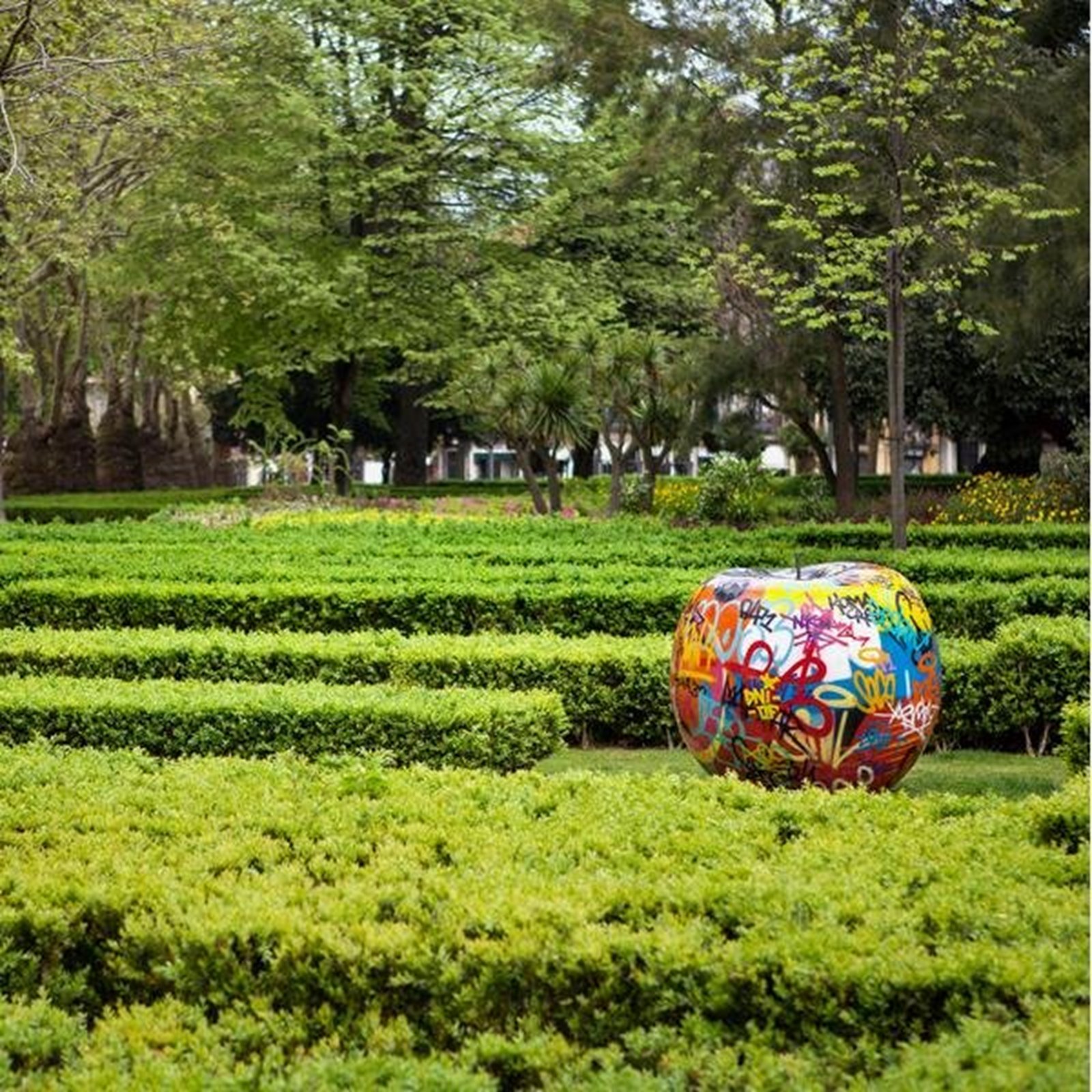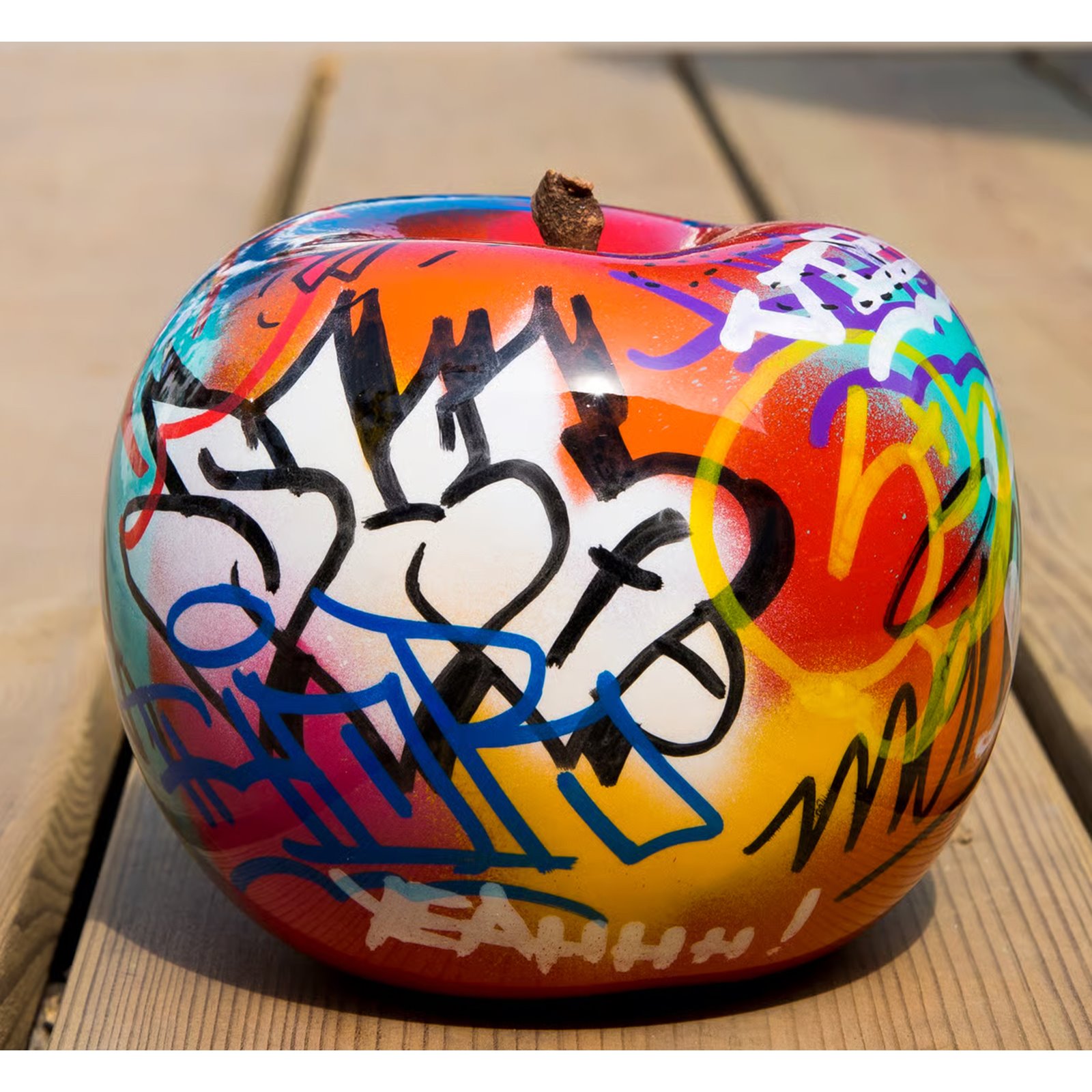 This Graffiti Apple is sculpted in ceramic with gloss finish and multicoloured design. With an eccentric and completely unique graffiti design, drawn by Portuguese graffiti artist, Bruno, no two apples will be the same. Available in 4 different sizes. The graffiti design can also be customised or varnished for outdoor use on request, so get in touch to find out more about the bespoke options available. 01306 710 411