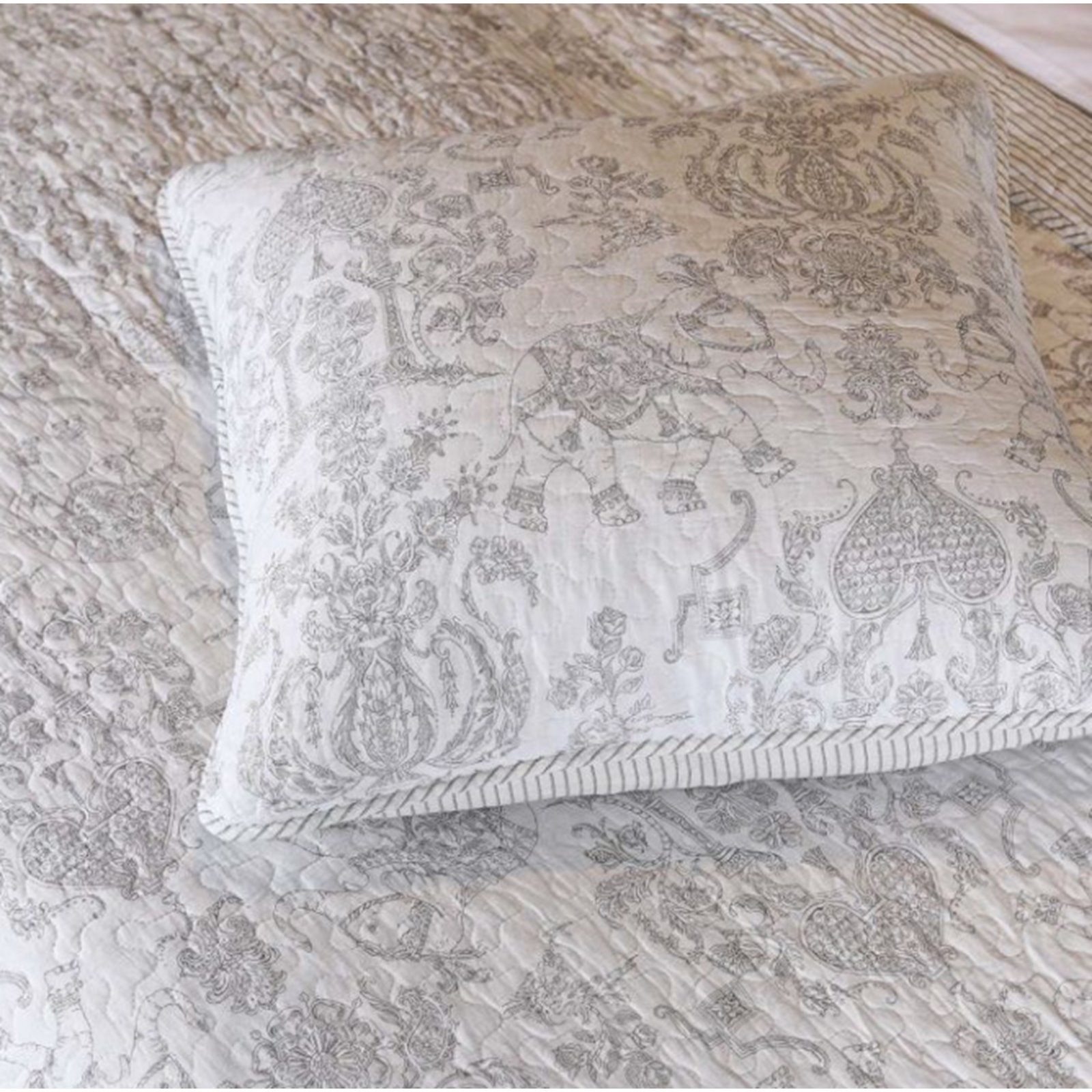 Grey and White Toile Bed Cushion