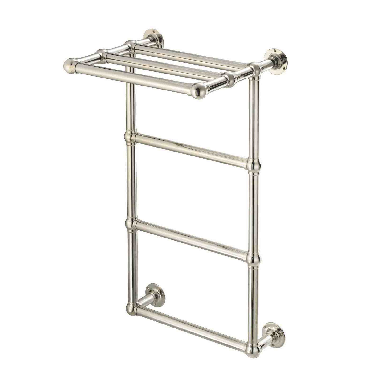 This wall mounted towel rail is hand made here in the UK using solid brass and plated in polished Chrome. Used predominately in hotels this is perfect for commercial the bathroom to store extra towels keeping them warm and at hand.