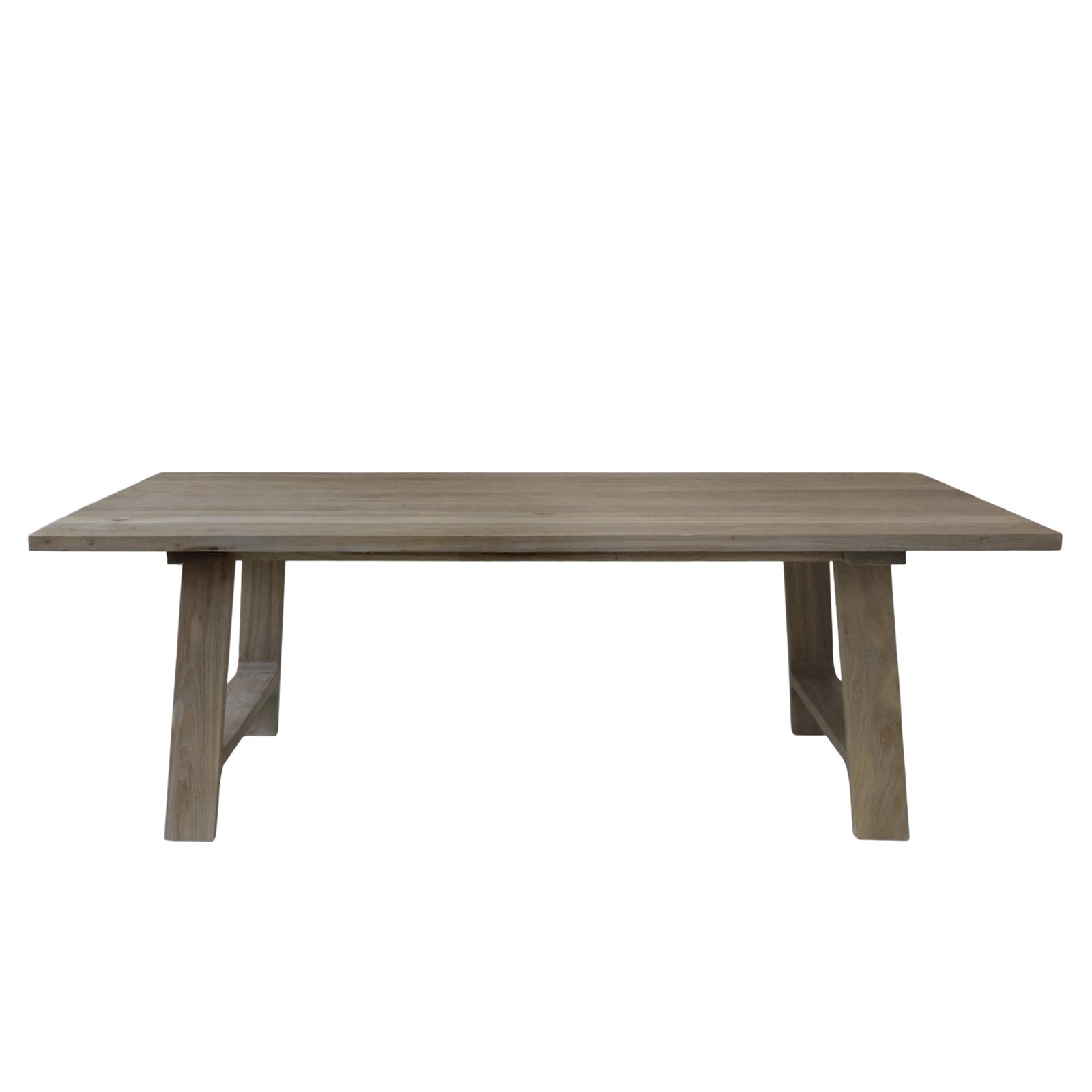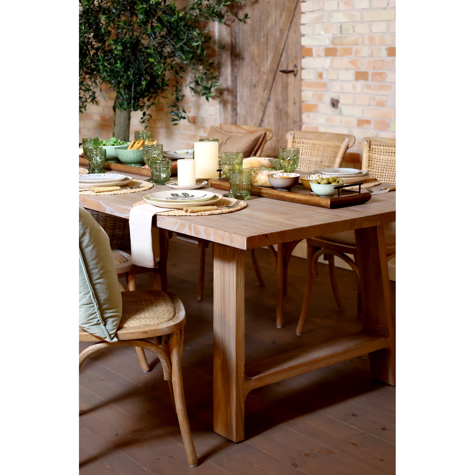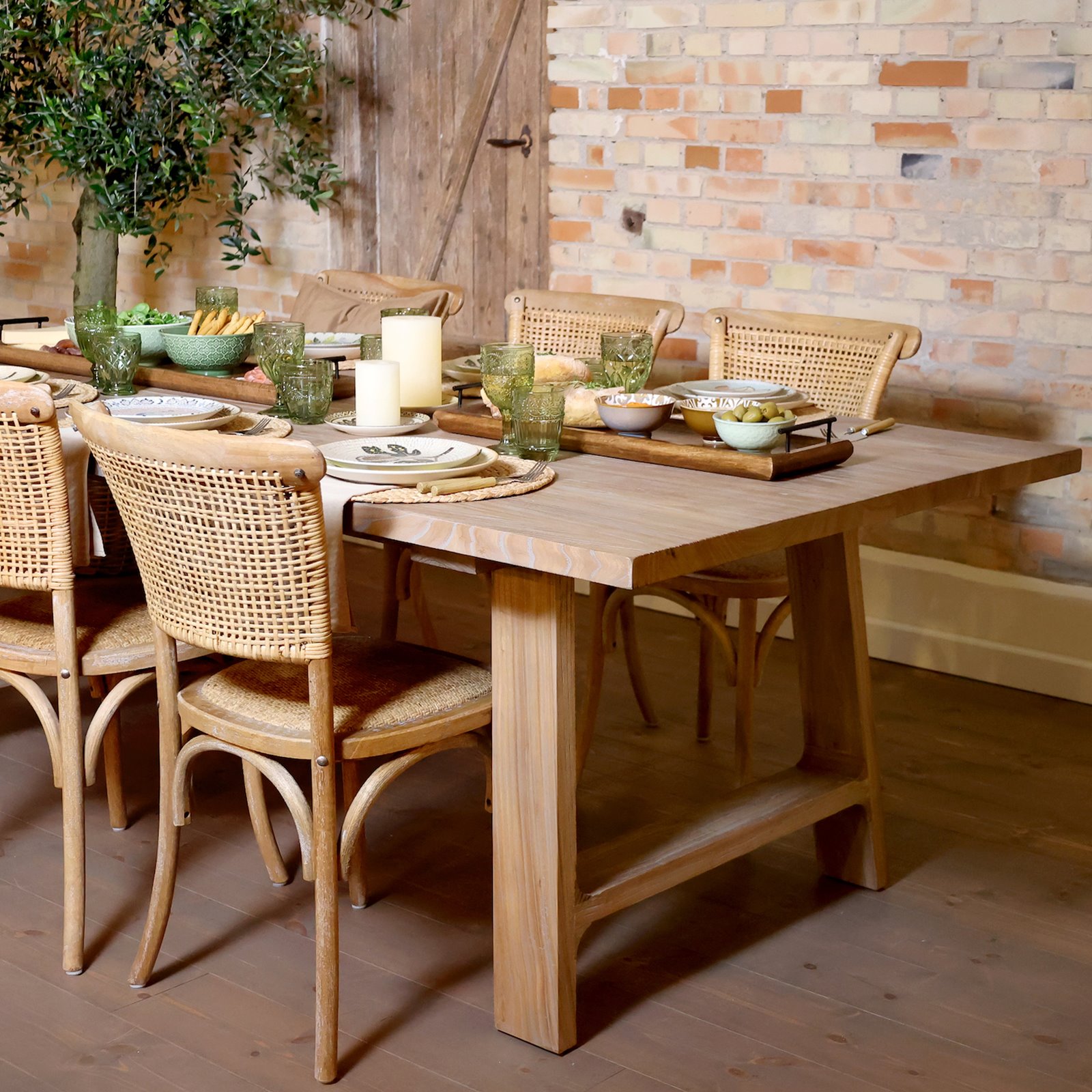 This beautiful table is made by hand from reclaimed wood. The small variations and natural details of the timber make each table unique. The table top has a beautiful plank design with a smooth surface and a slight pale grey wash that only enhances the detail and grain of the wood. The table easily seats 8 if paired with our Wicker back dining chairs or use a bench either end for two people to seat 10. The table is both beautiful, practical and versatile. It compliments most decorating styles, and will sit easily with a country decor or simple nordic interior.