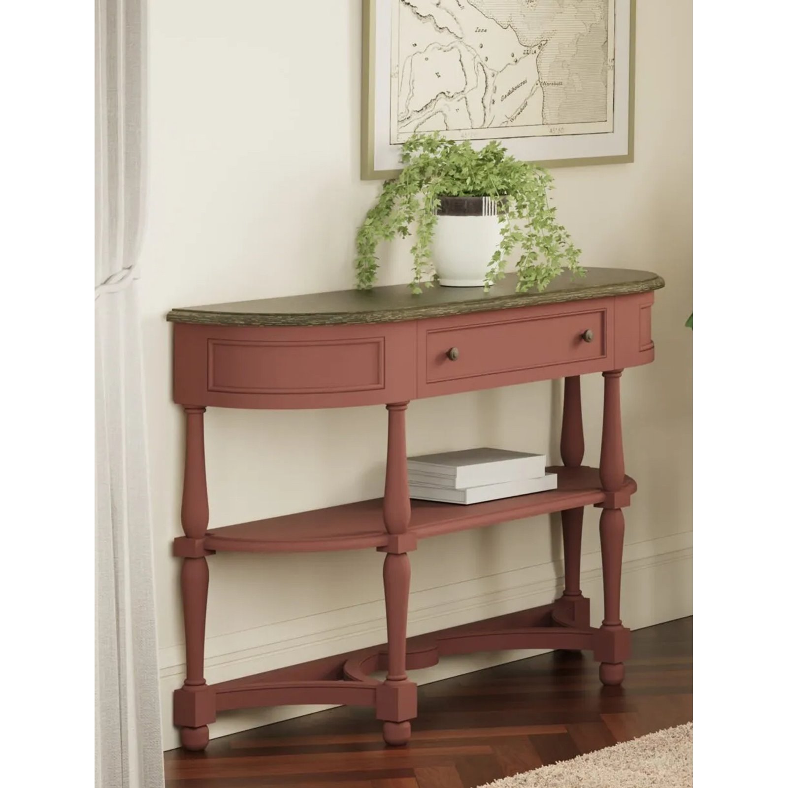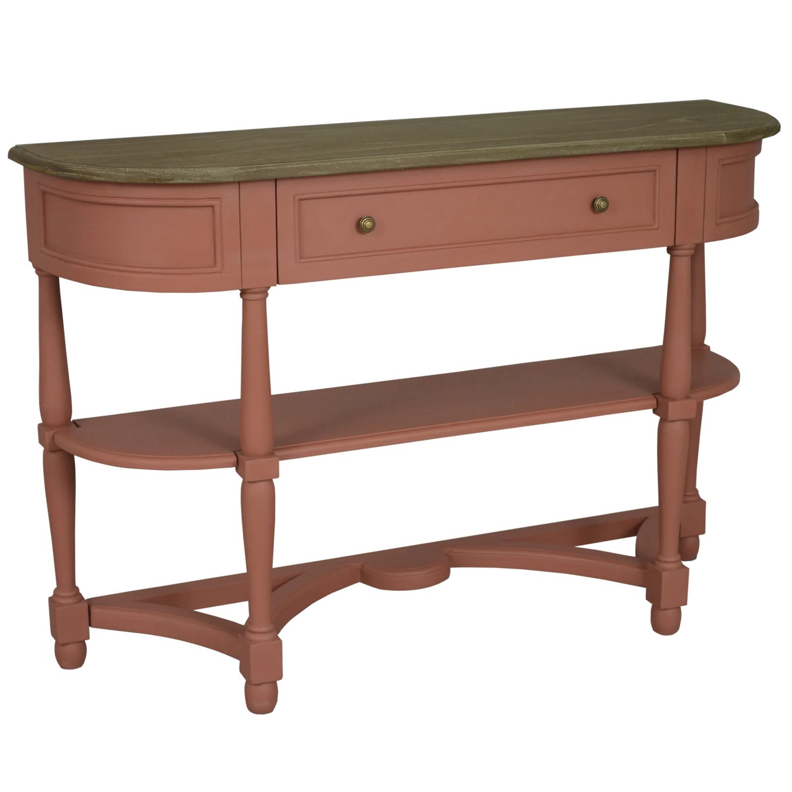 This lovely console will bring style and colour to your home. Made in solid wood the table has a lovely soft red paint finish with the top of the table left in the natural finish to show the lovely warmth and grain of the wood. The table has a deep central drawer with two button handles for a little extra storage. A gorgeous table in a timeless design.