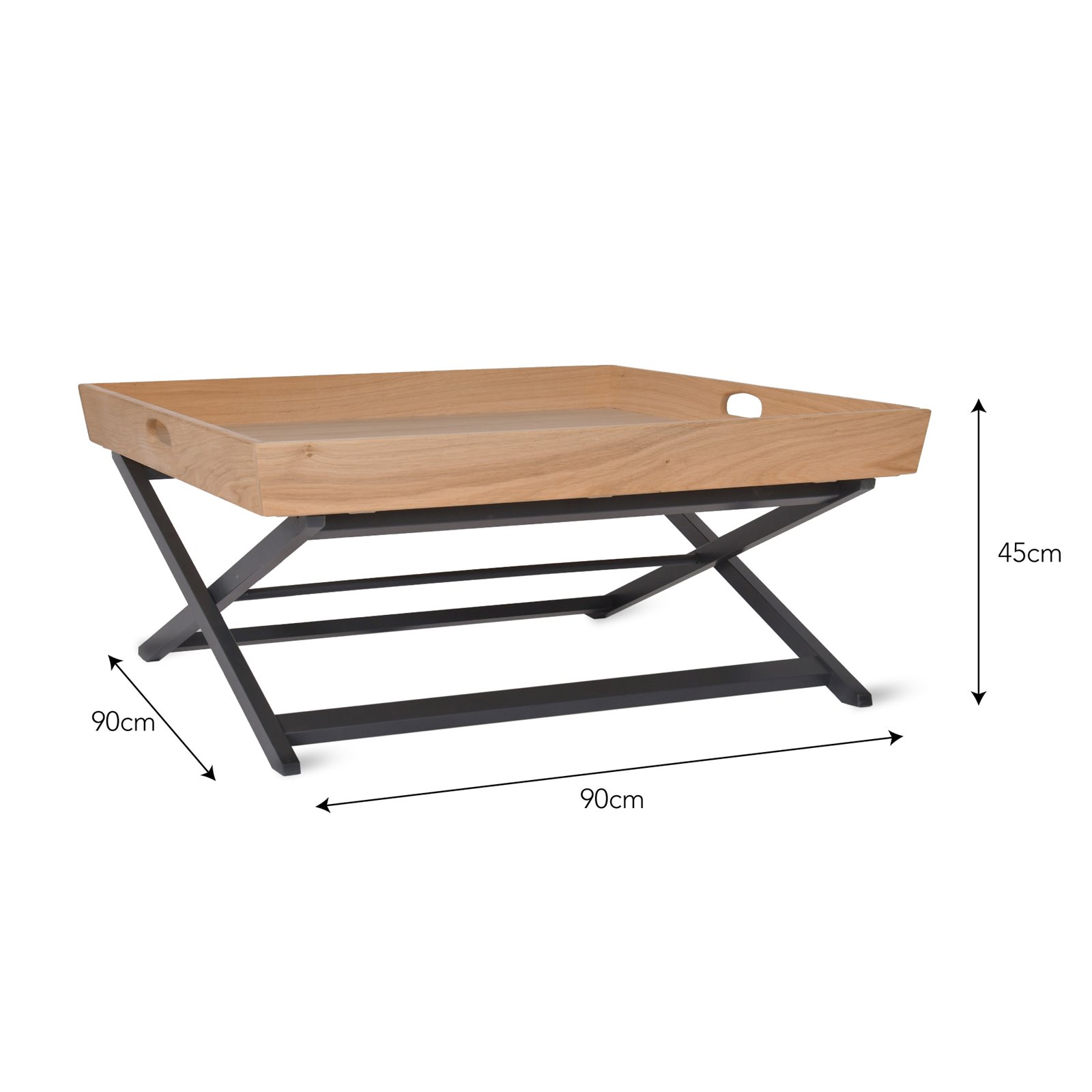 Unlike traditional coffee tables, the practical and portable table has a removable tray table top and foldable legs, allowing it to be moved or stored away with ease, creating more floor space when required. Whenever reattaching the tray to the table’s strut legs, ensure it is properly secured before use.