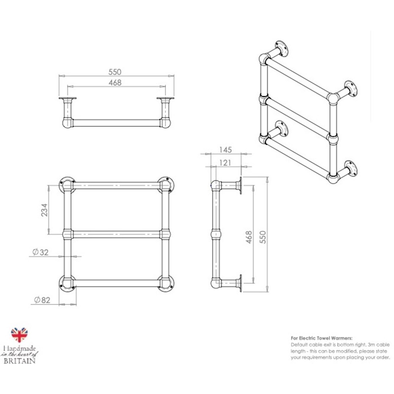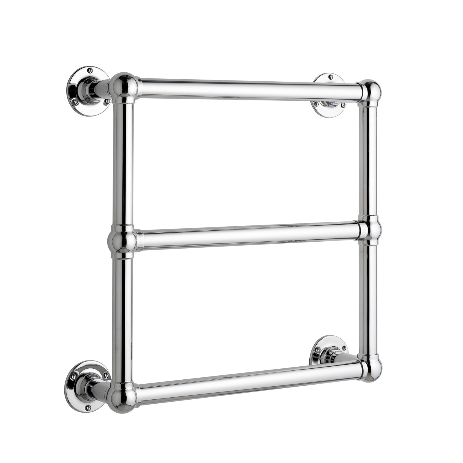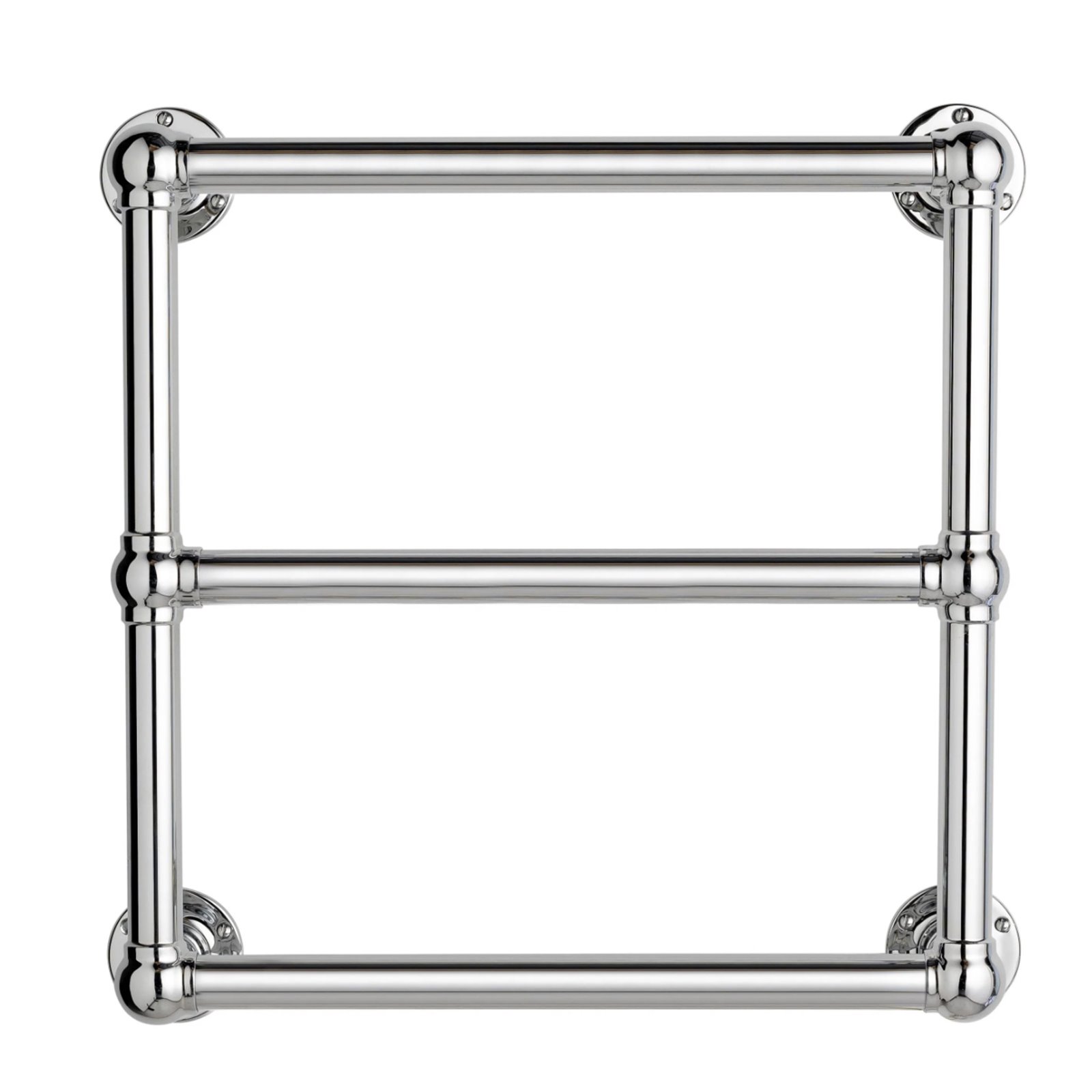 This wall mounted towel rail is hand made here in the UK using solid brass and plated in polished Chrome.  This Oxford rail measures 500mm x 500mm overall with a projection of 145mm but can be made to measure in any size. We construct from brass materials and this rail is made in the 32mm tube.