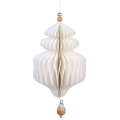 These beautiful folded paper decorations are perfect for the festive season. The beautifully styled decorations are hand made and hand finished with a lovely small natural wooden ball top and bottom of the delicate decoration with a silver filagree mount and graduating design. Perfect for hanging on your tree or group together and hang from the ceiling or mantelpiece to make a statement! Pair with our other paper decorations for real impact.