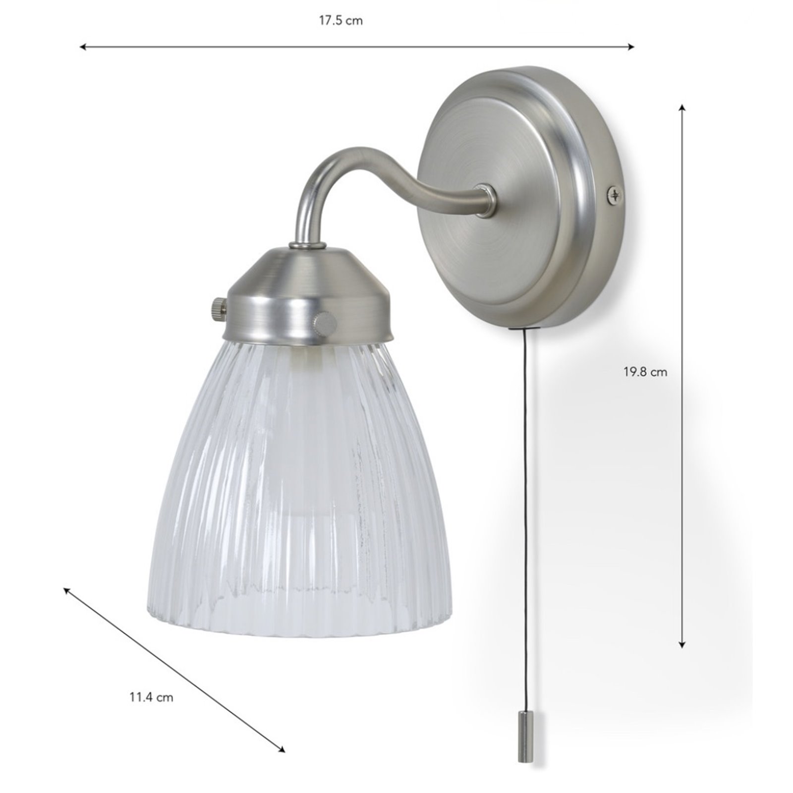 Our vintage-inspired Pimlico Glass Wall Light suits both traditional and contemporary bathroom designs. Its elegant swan neck and hand-blown fluted glass shade make this light source supremely sophisticated, while the neat pull cord makes it easy to switch it on and off. It’s finished with satin nickel coated steel fixings.