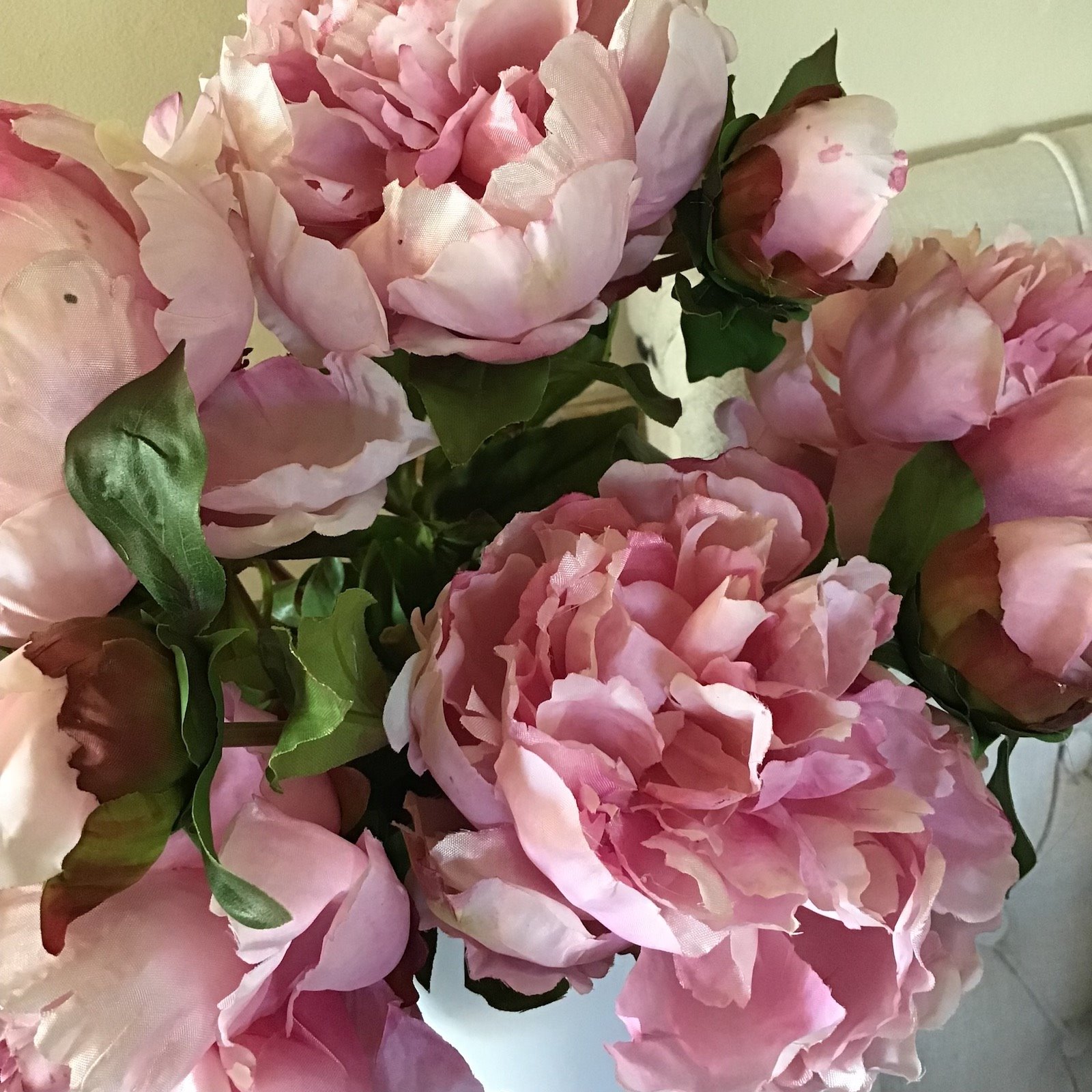 Our gorgeous pink silk peony flower has pale pink petals with abundant dark green soft leaves and set on a tall stalk is perfect for making up your own stunning display.  All our flowers are handmade in silk,  hand painted with delicate design and details. Pair with other flowers or simply display on their own in a huge bunch for a real statement.