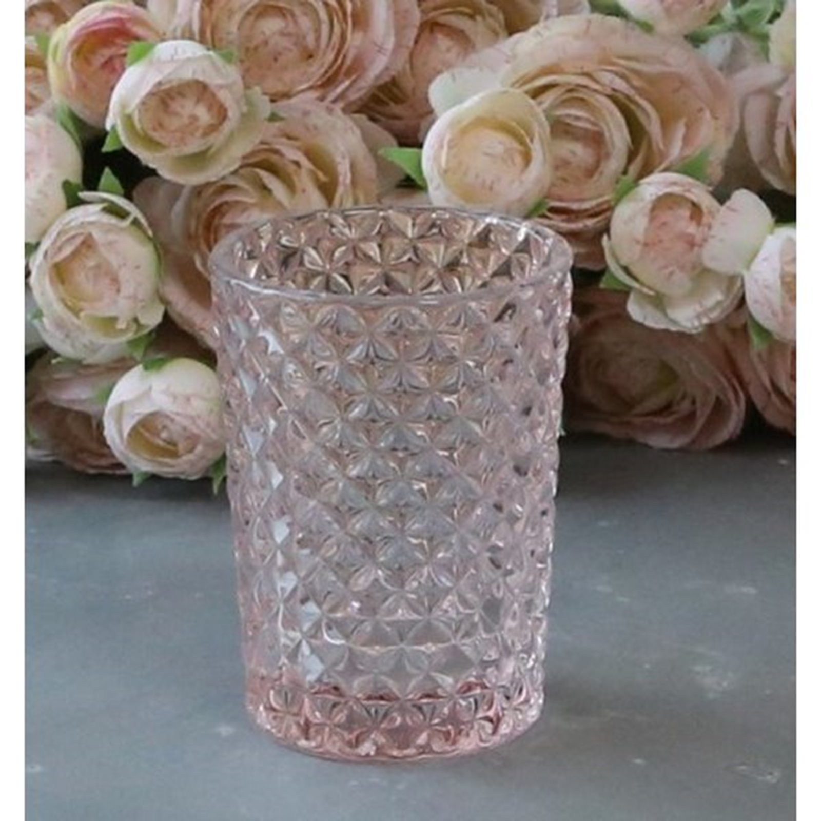 This tumbler is made in heavy duty glass but is cut beautifully with small diamond cut design from top to the bottom of the tumbler and has a powder pink finish to the glass. We also have a soap dish and Chrome topped soap dispenser to match.