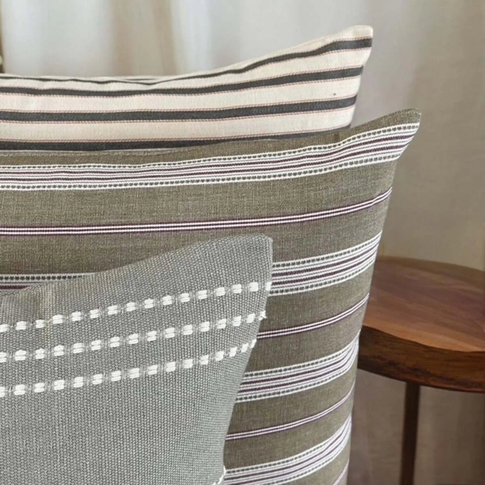 These gorgeous natural stripe cushions are hand made in India with yarn dyed stripes in vegetable dye colours, true originals. The cushions are made with 100% linen with a zip for easy opening and cleaning. It has a micro down inner pad and measures 50cm square.