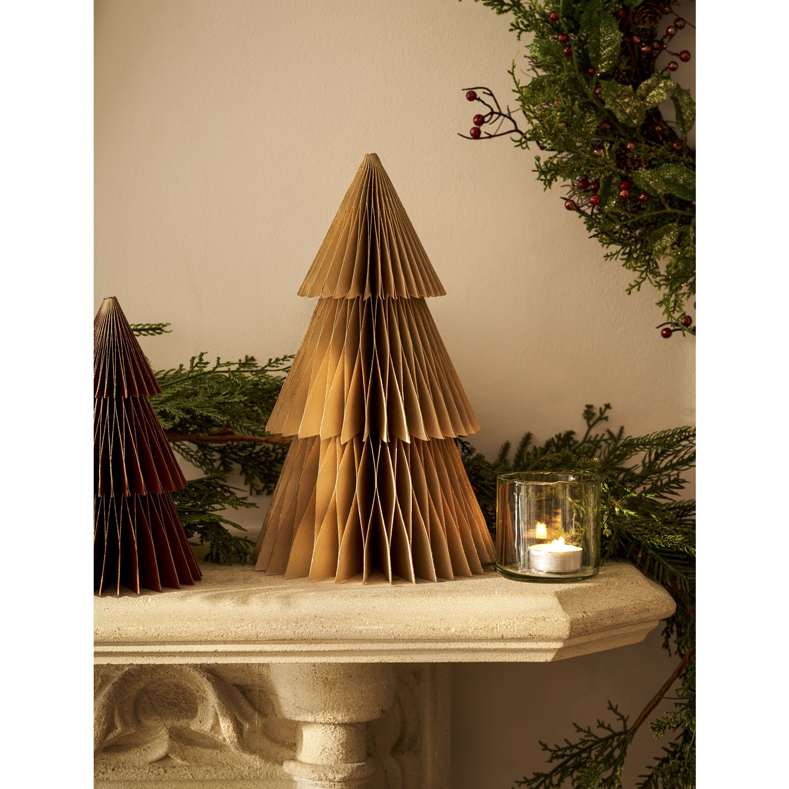 Bringing a modern twist to the concept of old-fashioned paper Christmas decorations, our freestanding Truffle Taupe Christmas Tree is a contemporary take on festive cheer. Three magnet catches make these trees easy to assemble, they fold away flat for easy storage. Its soft taupe colour is edged with gold for an eye-catching finish, and it works well grouped together with other Christmas Trees in different colours and sizes. Try them on a sideboard or mantelpiece, or use them to create a show stopping yuletide table scape for Christmas entertaining.