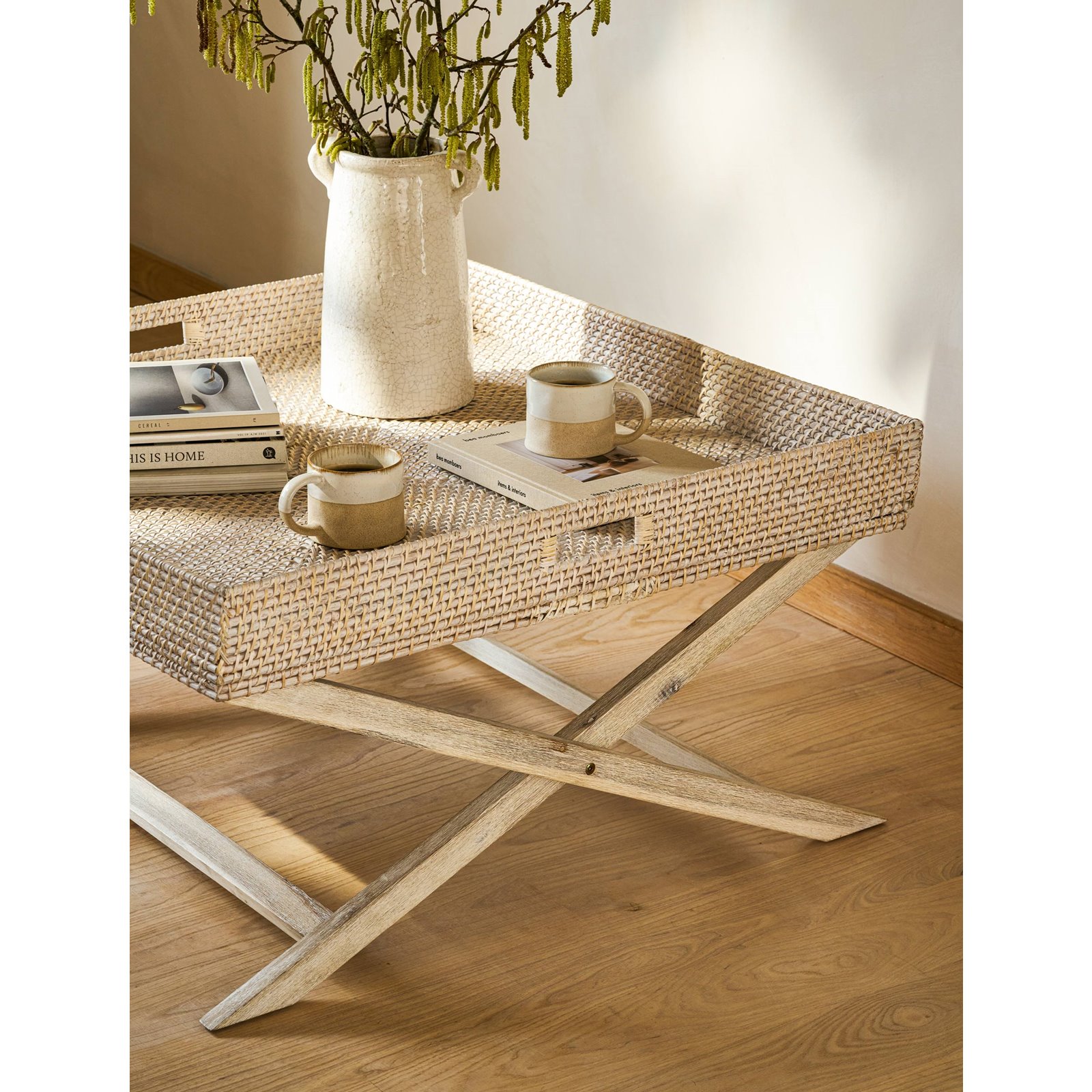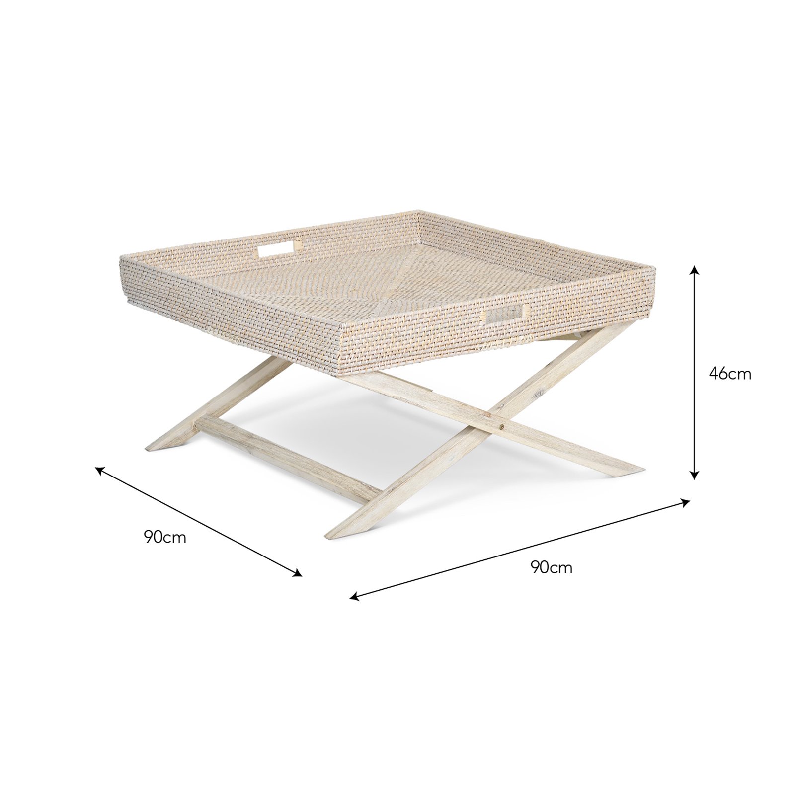 This versatile and portable coffee tray table is hand-crafted in Vietnam from rattan and acacia wood, with a whitewash finish that will blend well with any existing colour palette. Easy to move or store away when you need some more floorspace, this fantastic piece could even be used as a bedside table.