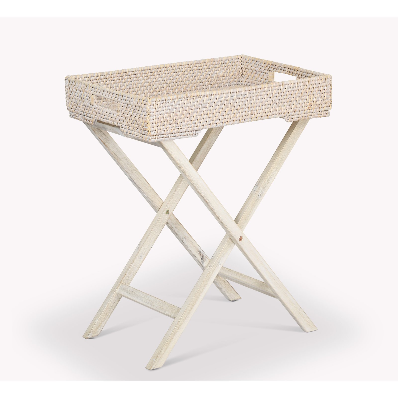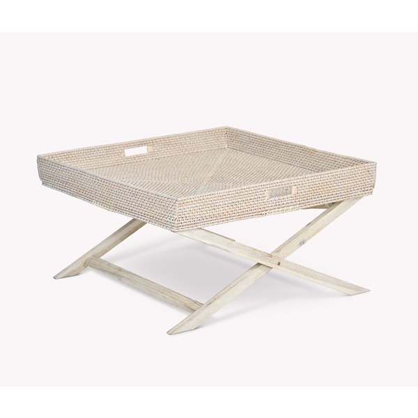 Washed White Rattan Tray Table
