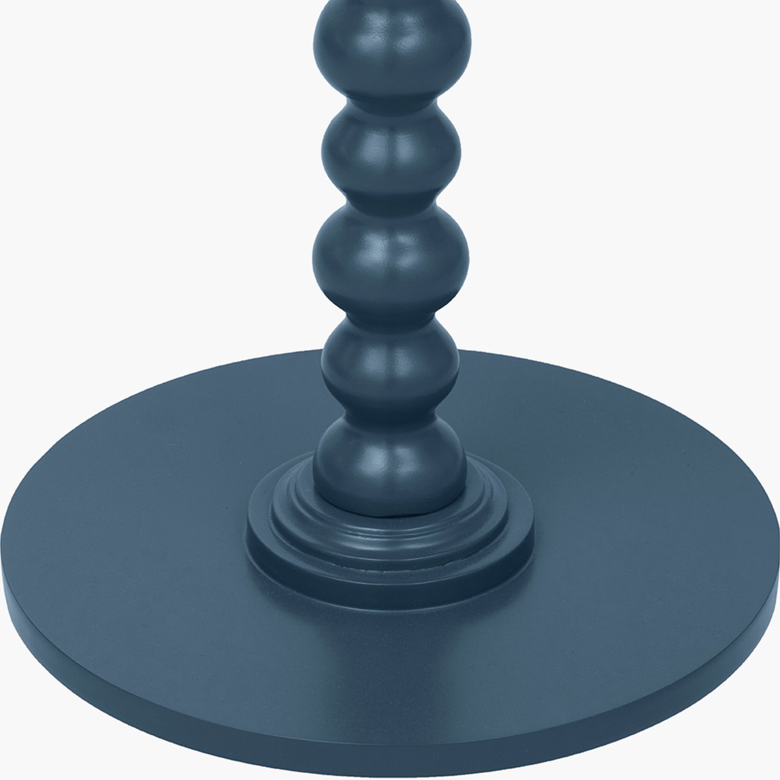 Our simple and stylish Bobbin side table is ideal for placing alongside a favourite armchair or sofa for holding cups of tea and a reading lamp. The simplicity of style has subtle impact enhanced by the navy blue paint finish. The clean round top rests on a distinctive bobble stem base and the smooth navy blue tone feels modern, warm, and effortlessly versatile. A perfect blend of form and function for contemporary . A little Self assembly with this little table.